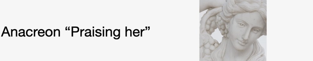 Anacreon: He was born in the Ionian city of Teos around 572 BC. When the city was threatened by the Persians, the inhabitants settled in Abdira. Anacreon, already a well-known poet of monody, was also invited by Polycrates to Samos. After the assassination of the tyrant in 522 BC. he went to Athens. His poetic aura touches the surface, but with a grace of which he was rightly proud: “charienda men gar ado charienda d’ oida lexai”, he enjoys the wine “without insults”, creating the tradition that he died of suffocation as an old man, swallowing a rotten grape.